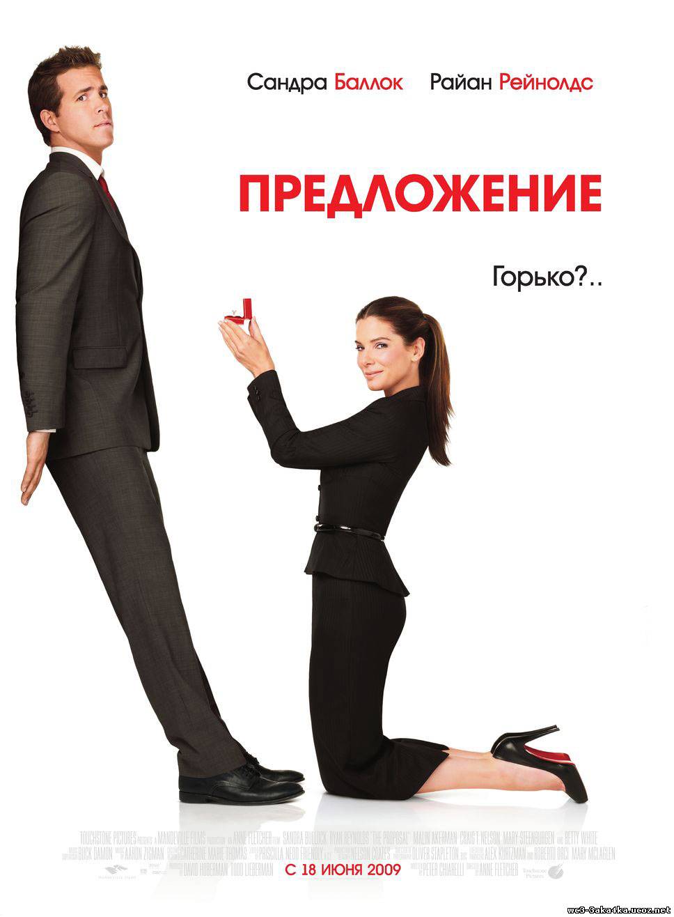 О фильме: Амбициозная и властная нью-йоркская начальница узнает, что срок ее вида на жительство заканчивается и ей грозит депортация в Канаду. Чтобы не потерять работу, для нее остается один выход — срочно заставить кого-то из своих подчиненных фиктивно на ней жениться...