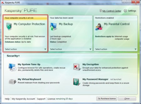 Новейший продукт Лаборатории Касперского Kaspersky PURE обеспечивает полную защиту компьютера, используются все виды протекции, какие только можно представить. По сути, это целая система, огромный комплекс инструментов "на все случаи жизни".