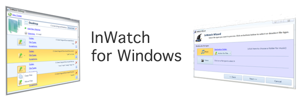 InWatch – удобная программа для мониторинга и автоматической сортировки файлов по типам. Утилита следит за указанной в настройках папкой и сортирует попадающие в неё файлы в другие заданные директории путем копирования или перемещения.