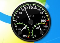 Гаджет в виде спидометра с гибкими настройками: можно выбрать один из 11 вариантов циферблата, а так же определить какие параметры будут отображаться (нагрузка ЦП, RAM, активность или занятое место на диске, заряд батареи и активность интернет-соединения).