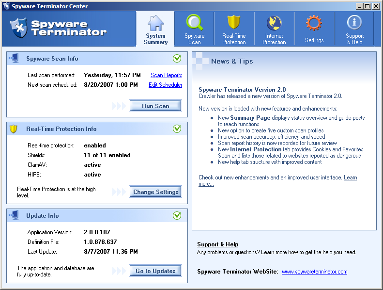 Spyware Terminator - это бесплатная, удобная в использовании программа, для эффективного удаления вирусов в режиме реального времени, программа также эффективна против червей, шпионов, Троянов, взломщиков и других вредителей. Программа защитит ваш компьтер, обеспечит его щитом в режиме реального времени, продвинутой системой сканирования, а также хранилищем-карантином. Программа...