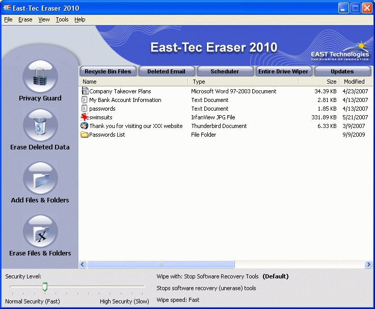 Защитите свою информацию удаляя все события с вашего компьютера, а также историю онлайн активности при помощи программы East-Tec Eraser 2011. Программа удалит все следы вашей работы за ПК, электронные письма, которые были удалены, сотрет следы ввода флеш-накопителей, дискет, дисков CD/DVD. Программа сотрет историю посещения страниц с самых последних версий браузеров, удалит архив...