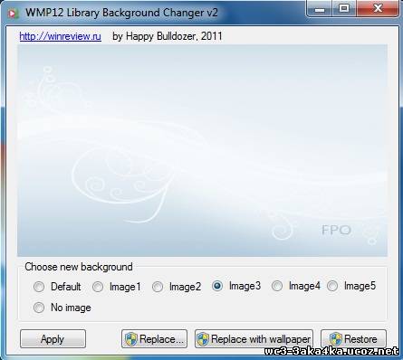 Интересная утилита которая позволяет персонализировать интерфейс Проигрывателя Windows Media 12, в частности заменить фон библиотеки на любое другое изображение.
