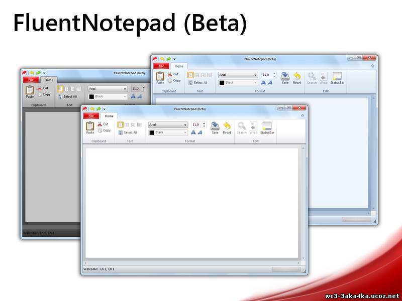 FluentNotepad – это отличный заменитель стандартному блокноту с красивым ribbon-интерфейсом (ленточным меню). Среди возможностей программы: поддержка скинов, открытие файлов в виде закладок, подсветка синтаксиса для более удобного написания скриптов.