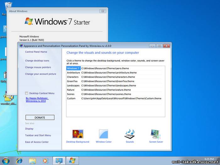 Панель Персонализации – утилита, реализующая панель персонализации для Windows 7 версий Начальная и Домашняя Базовая, лишенных по-умолчанию этого компонента.