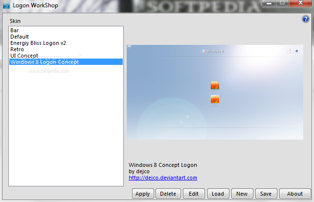 Logon Workshop – утилита для создания, редактирования и замены экрана приветствия Windows 7. Программа позволяет редактировать графические (фоны, кнопки, рамки) и текстовые ресурсы (цвет, размер, расположение и т.д.).