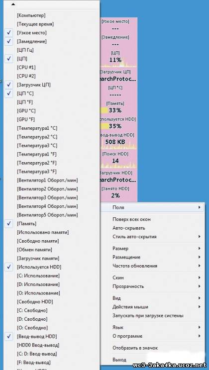 Monitor Your PC Performance – неплохая утилита для индикации и мониторинга системных ресурсов с рабочего стола, отличающаяся поддержкой огромного количества различных параметров работы системы с возможностью указания «узких мест», снижающих производительность.
