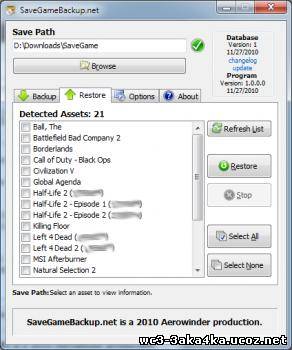 SaveGameBackup.net – простая в использовании утилита для резервного копирования файлов-сохранений игр. Прежде всего данная программа пригодится геймерам, которые собираются переустановить ОС или просто хотят застраховать себя от вынужденного повторного прохождения игры в случае какого-то сбоя.