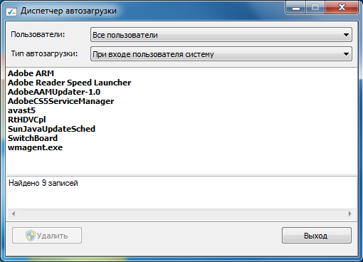 Небольшая программа, единственным назначением которой является удаление ненужных программ из автозагрузки. Удаляет непосредственно из реестра и, в отличии от msconfig.exe, насовсем.
